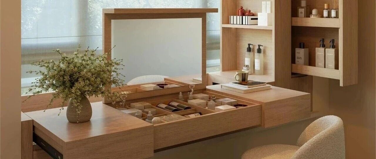 《飘窗别空着!全屋定制改悬浮梳妆台,隐藏收纳 + 原木风,小户型美翻了》
